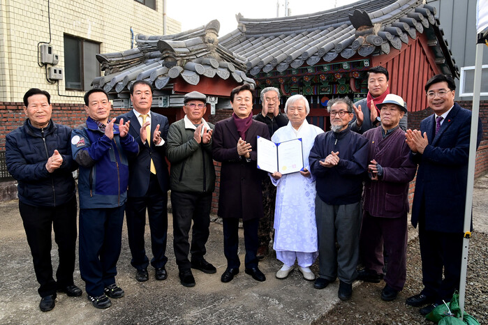 조규일 진주시장은 지난 12일, 지난 2월 말 경남도 문화재 자료로 지정된 ‘진주 최대성 정려 현판’이 소재한 미천면 안간리 현장을 방문해 종중 관계자를 격려하고 문화재 지정서를 전달했다.