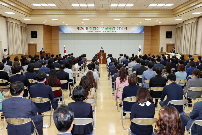 천범산 충청북도부교육감은 취임식에 지속가능한 공감·동행교육의 실현을 위해 교육시스템을 지원하고, 교육을 통해 지역이 발전하며, 학교가 지역사회에서 중심이 될 수 있도록 노력하겠다고 포부를 밝혔다.