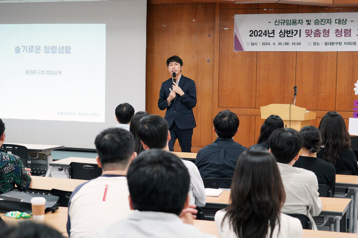 | ▲ 4월 30일 실시한 신규임용·승진공직자 맞춤형 청렴교육 (사진=동대문구청 제공) |