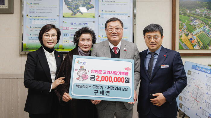 김윤철 합천군수는 “고향사랑기부제에 동참해 주신 구태연 씨에게 감사드린다”며 “기부금은 합천군 발전과 주민 복지 증진을 위한 소중한 재원으로 활용될 수 있도록 노력하겠다”고 밝혔다.