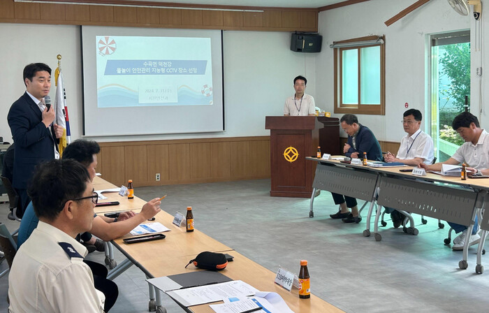 진주시는 31일 수곡면사무소에서 물놀이 위험구역 지능형 CCTV 설치를 위한 사전설명회를 개최했다.