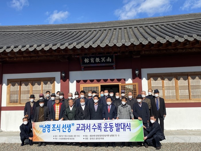 용암서원보존회(회장 김종철)는 23일 오전 11시 용암서원 내 남명교육관에서 문준희 합천군수, 배몽희 합천군의회 의장, 김윤철 경상남도의회 의원, 이주영 전 해수부 장관, 김영기 남명사랑 대표, 용암서원 임원들 등 30여 명을 초청해 남명 조식 교과서 수록 촉진운동 발대식을 개최했다.