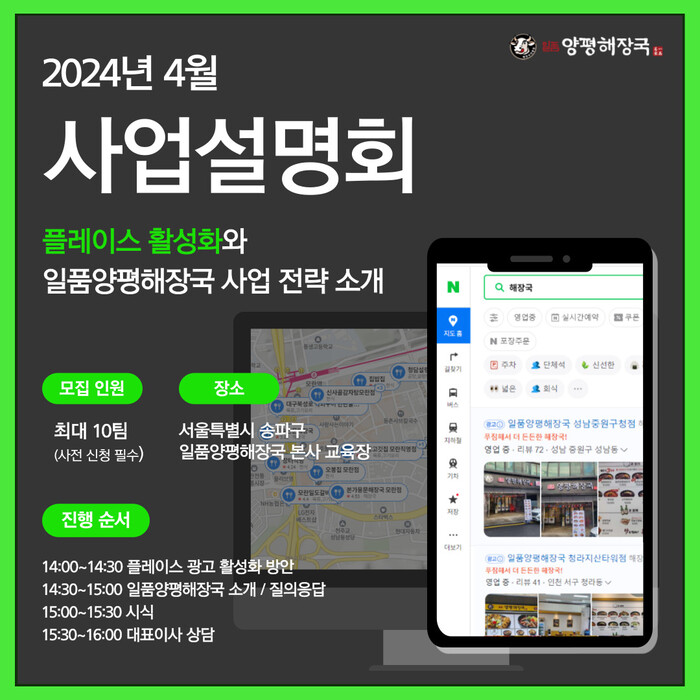 한편 사업설명회 신청은 일품양평해장국 공식 홈페이지 또는 SNS에서 가능하다.