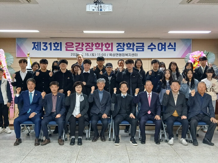 은강장학회는 1994년 옥성면 농소리 출신인 고(故) 엄재우 초대 이사장이 경제적 어려움으로 학업을 이어가기 어려운 후배들을 돕기 위해 10억 원을 기탁하며 설립됐다. 이후 31년 동안 573명의 학생에게 총 6억 700만 원의 장학금을 지원하며 지역 인재 육성에 기여해왔다.