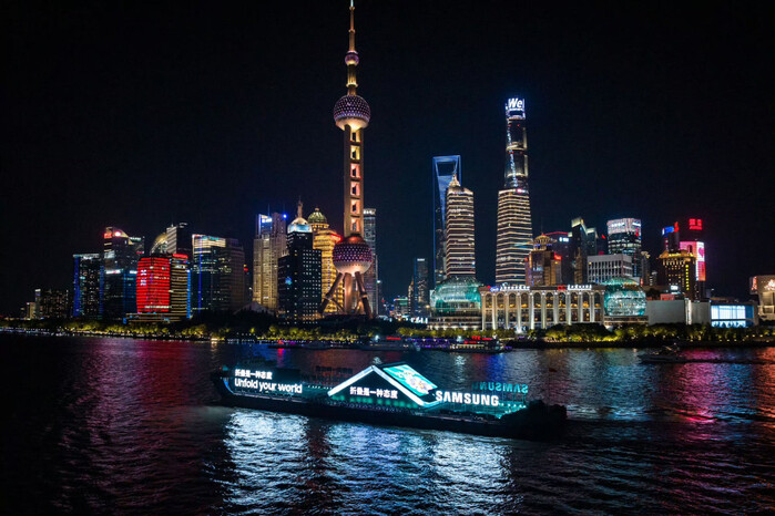 삼성전자는 지난 8일 중국 상하이에서 LED로 제작된 약 70m 길이의 '갤럭시 Z 플립5' 조형물 선박을 제작하고 선상 마케팅을 진행했다.