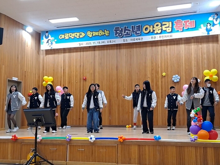 한준열 주민자치위원장은 “야로면은 유치원부터 초·중·고등학교가 모두 있어 청소년들을 위한 행사를 준비하게 되었다”라며, “ 청소년들이 끼와 재능을 마음껏 펼칠 수 있는 자리를 꾸준히 마련하고, 내년에는 더욱 발전된 행사로 이어 가겠다.”라고 말했다.
