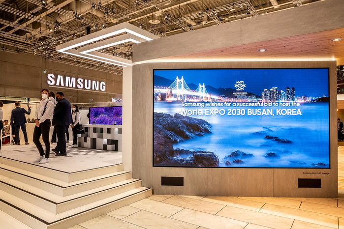 삼성전자는 메세 베를린(Messe Berlin)에 위치한 시티 큐브 베를린(City Cube Berlin)의 삼성전자 IFA 전시장은 물론 베를린 곳곳에서 전 세계 관람객들에게 '2030 부산세계박람회'를 알리는 다양한 광고를 선보였다.