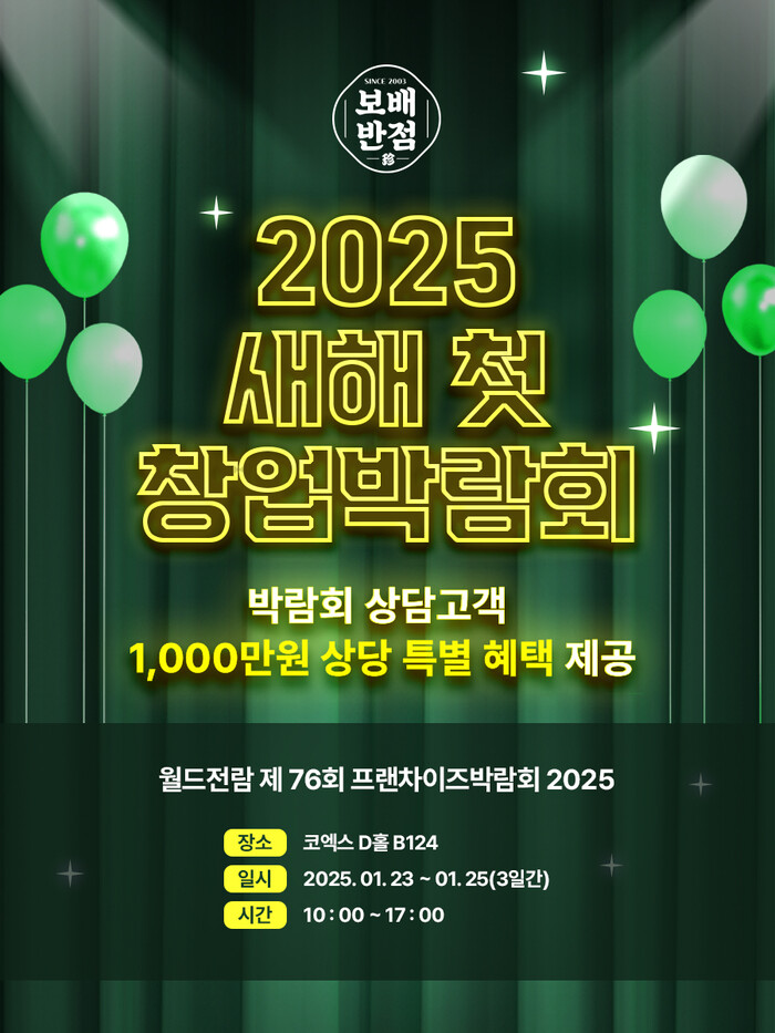특히 보배반점은 새해 첫 창업박람회를 찾는 예비 창업자들을 위해 최대 1,000만 원 상당의 특별 혜택을 제공하며, 이외에도 로열티 면제와 지역 선점 시 물류비 1,000만 원 지원, 프랜차이즈론 최대 2억 원 대출 지원 등 다양한 혜택을 준비했다.