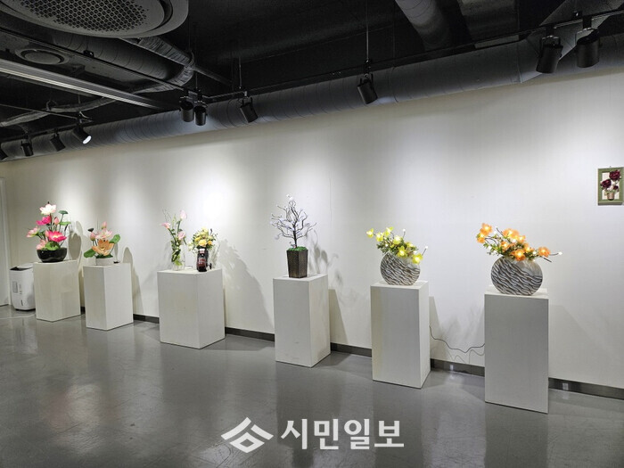 김영순 작가는 LED 조명을 활용한 꽃으로 꽃바구니와 화병, 꽃박스 등에 꽃꽂이를 통해 작품을 만들어 낸다.