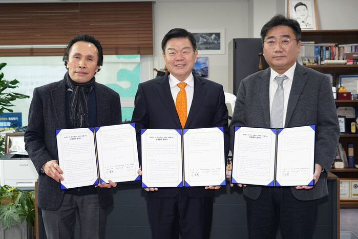 | ▲ 동대문구 대‧중소 유통업의 경쟁력 강화를 위한 상생협력 협약식 (왼쪽부터 청량리전통시장 상인회장 정의근 회장, 이필형 동대문구청장, 한국체인스토어협회 허영재 부회장) |
