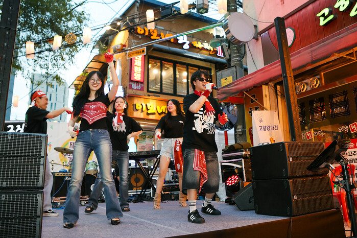| ▲ 서울 동대문구가 최근 회기역 파전골목 일대에서 ‘제1회 회기 파전 가요제’를 성황리에 개최했다. 사진은 무대에서 참가팀이 열정적인 공연을 선보이고 있는 모습.(사진=동대문구청 제공) |