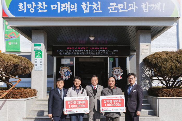 김윤철 합천군수는 “삼가면 체육회와 청년회의 따뜻한 나눔이 어려운 이웃들에게 큰 희망이 될 것이다. 기탁된 성금은 꼭 필요한 이웃들에게 전달될 수 있도록 하겠다”고 감사의 뜻을 전했다.