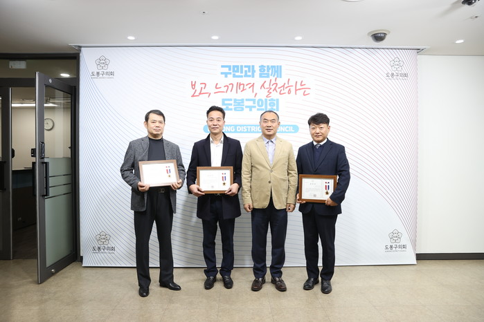[시민일보 = 박준우 기자] 서울 도봉구의회(의장 강신만)는 최근 의장실에서 지역발전에 기여한 유공자 표창 수여식을 개최했다.