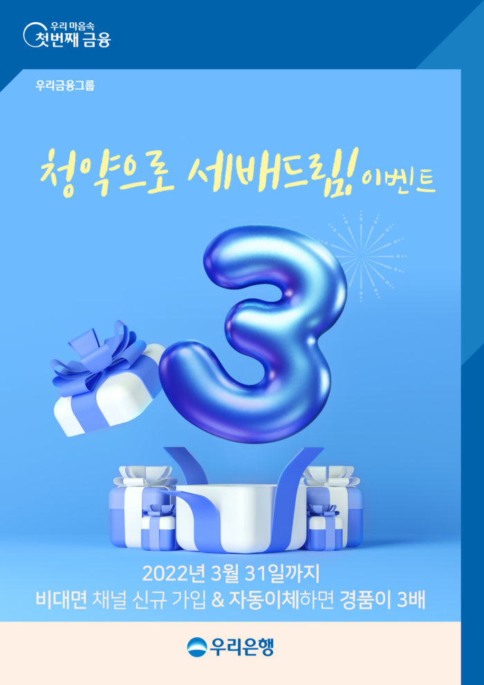 자세한 이벤트 내용은 우리WON뱅킹, 인터넷뱅킹 이벤트 페이지를 통해 확인할 수 있다.
