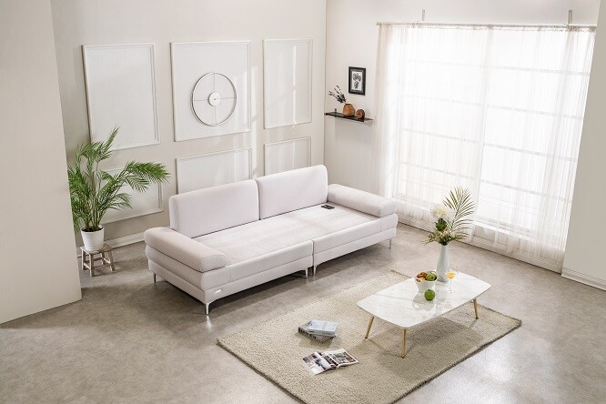 ‘현대돌침대’가 브릭 원단을 사용한 모던 컨셉의 모짜르트 소파를 출시했다.