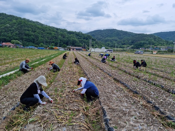 특히 농기계작업이 어렵고 인력의존도가 높은 양파수확 작업에 일손을 보태 적기영농에 도움이 되고자 했다.