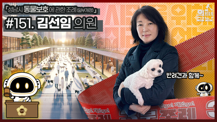 이번에 소개된 조례는 김선임 의원 등 12명이 발의한 ‘성남시 동물보호에 관한 조례(일부개정)’이다. 이 조례는 동물보호법에서 위임된 사항과 동물보호 및 동물복지에 관한 사항을 규정하여 동물에 대한 학대행위를 방지하고, 동물의 생명보호 및 복지 증진과 주민의 생명존중에 대한 정서 함양에 이바지함을 목적으로 한다. 이번 조례 개정은 동물과 인간이 조화롭게 공존하는 생명존중 의식 함양에 이바지 할 것으로 기대된다. 이 조례는 2024년 12월 16일부터 시행 중이다.