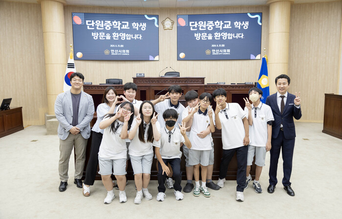 지난 25일 의회 본회의장 등지에서 진행된 견학 프로그램에는 단원중학교 1학년생 9명과 인솔교사 1명이 참여했으며, 의회에서는 송바우나 의장과 최진호 의원 등이 학생들을 맞았다.