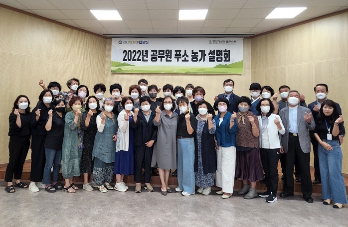 | ▲ 강진군, 2022년 공무원 푸소 농가 설명회 개최 후 기념촬영 / 강진군 제공 |