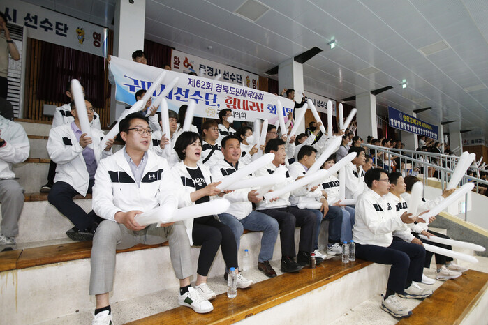 [구미=박병상 기자] 경북 구미시의회(의장 안주찬) 전체의원과 직원 40여명은 5월10일부터 13일까지 개최되는 제62회 경북도민체육대회에 출전하는 구미시 선수단을 격려하기 위해 12일 배구 경기장 등을 방문했다.
