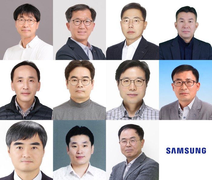 | ▲ (첫째줄) 삼성전자 김문수 명장, 삼성전자 박우철 명장, 삼성전자 왕국선 명장, 삼성전자 이진일 명장, (둘째줄) 삼성전자 정병영 명장, 삼성전자 서희주 명장, 삼성전자 신재성 명장, 삼성전자 한종우 명장 (셋째줄) 삼성전자 이광수 명장, 삼성디스플레이 김채호 명장, 삼성SDI 주관노 명장.(사진제공=삼성전자) |