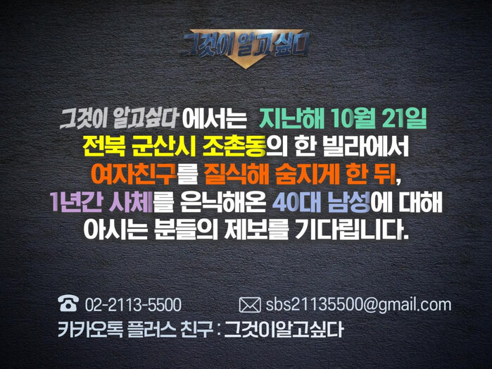 최근 SBS '그것이 알고 싶다' 제작진이 지난 2023년 10월 21일 군산시 조촌동의 빌라에서 여자친구 살해 범행을 파헤치며 의혹이 증폭되고 있다.