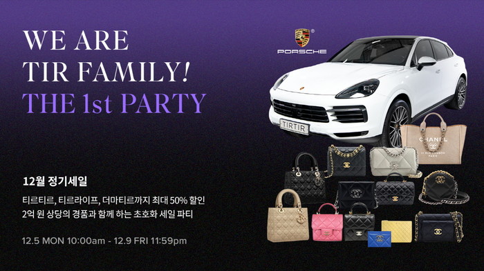 티르 패밀리의 12월 정기 세일의 경우 자사몰은 오는 12월 5일 오전 10시부터 9일 저녁 11시 59분까지 5일간 진행되며 티르티르의 전 제품은 물론이고 최근 런칭한 프리미엄 라이프스타일 브랜드 티르라이프와 더마 코스메틱 브랜드 더마티르의 제품들을 최대 30%~50% 할인된 혜택으로 구입 가능하다.