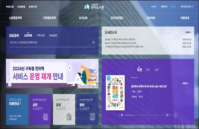 | ▲ 부산도서관은 전 세대를 아우르는 다양한 콘텐츠를 제공하여 부산 시민의 지적 욕구를 충족시킬 수 있도록 지원한다.(사진=부산광역시 전자도서관 홈페이지) |