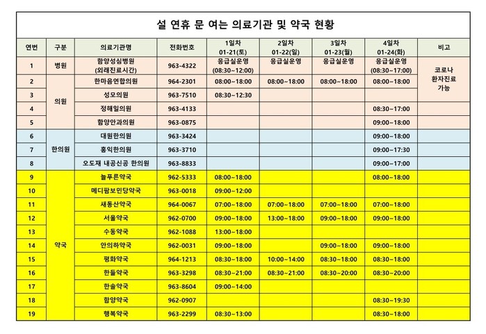 아울러 설 연휴기간 의료분야 공백을 최소화를 위해 비상진료기관 및 당번약국을 운영하여 안전한 설 명절 조성에 나서며, 물가관리 및 전통시장 이용하기 등을 통해 지역경제 활력을 제고해 나간다는 방침이다.