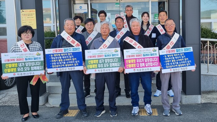 서문병관 적중면장은 “오늘 캠페인에 함께해 주신 주민자치회원분들께 감사 드린다”며 “주민 모두가 한마음으로 산불예방에 참여할 수 있도록 앞으로도 챌린지 캠페인을 이어가겠다”고 밝혔다.