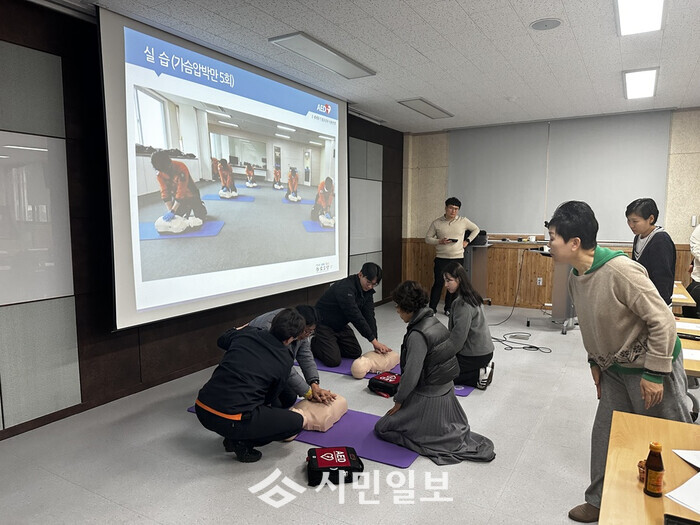 이번 교육은 1월 인사 이동으로 공공기관 내 AED 담당자가 변경됨에 따라, 신규 담당자들의 초기 대응 역량을 강화하고 응급상황 발생 시 신속하고 정확한 대처가 가능하도록 지원하기 위해 마련됐다.