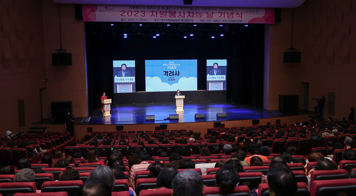 [성주=박병상 기자] 경북 성주군은 지난 29일(수), 15시 성주문화예술회관 대공연장에서 자원봉사자 및 성주군자원봉사센터 운영위원 등 700여 명이 참석한 가운데 성주군자원봉사센터 주관으로 2023 자원봉사자의 날 기념식을 개최했다.