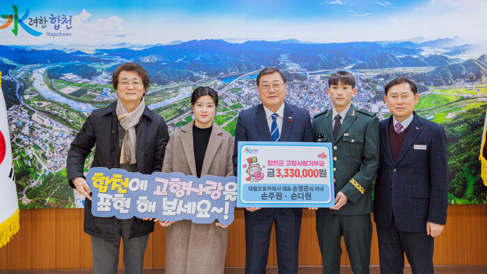 손다원·손주원 남매는 아버지의 합천 취업 30주년과 손주원 씨의 2025년 3월 입대를 기념하며 숫자 3에 의미를 두고 333만 원을 기탁했다고 밝혔다.
