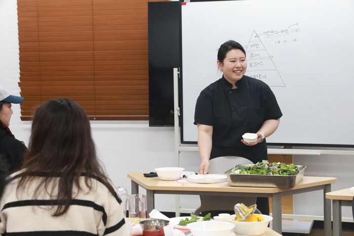| ▲ 강진살이를 하고 있는 임고은씨가 청년가게에서 관내 청년들을 대상으로 음식 프로그램을 제공하고 있다. / 강진군 제공 |