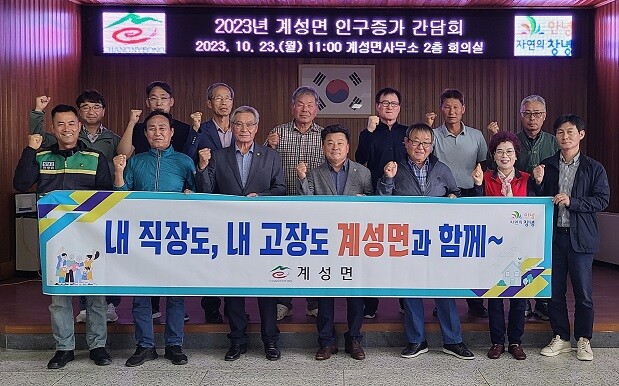 [창녕=최성일 기자] 창녕군 계성면은 인구증가 특별대책위원과 마을 이장, 면내 기관단체장, 계성면 직원이 참석한 가운데 ‘계성면 인구증가 간담회’를 개최했다고 25일 밝혔다.
