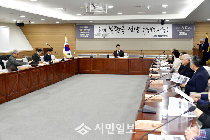 | ▲ 광주광역시의회 이명노 의원(더불어민주당·서구3), 17일 광주광역시의회 4층 대회의실에서 ‘회재 박광옥 선생 유집(회재집) 개역 정책토론회’ 주재 / 광주광역시의회 제공 |