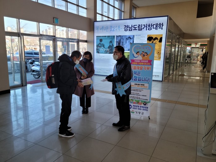 군은 ‘고향 사랑 기부금, 선택은 거창입니다!’라는 슬로건으로 설 명절을 대비해 차량 이동이 많은 주요 도로에 고향사랑 기부제 홍보 현수막을 게시하고 전광판과 SNS에 홍보하는 등 고향사랑 기부제 알리기에 총력을 기울이고 있다.