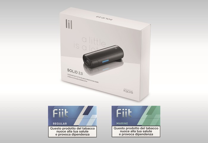 | ▲ 이탈리아에 판매되는 KT&G ‘릴 솔리드 2.0’ 디바이스 패키지 및 전용스틱 2종 ‘핏 레귤러(Fiit REGULAR)’, ‘핏 마린(Fiit MARINE)’. (사진제공=KT&G) |