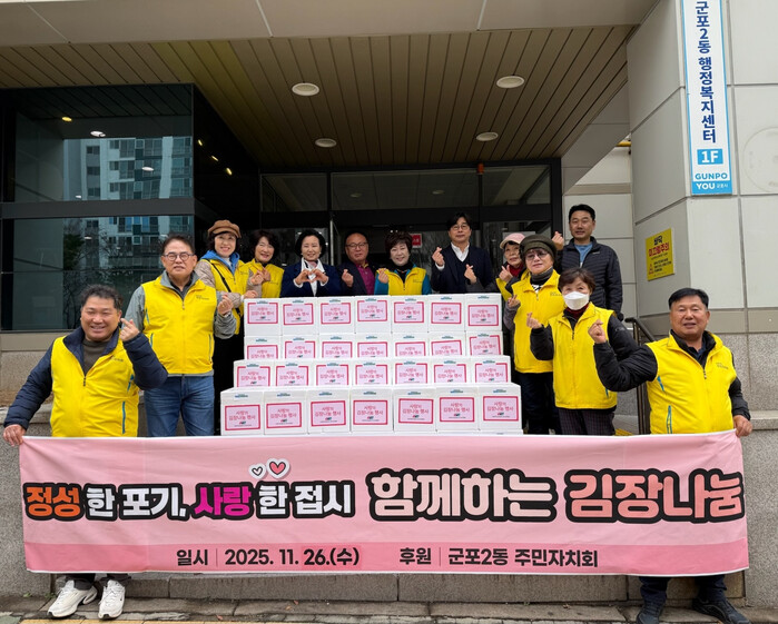 노승민 군포2동장은 “어려운 시기일수록 취약계층에 대한 관심과 지원이 필요하다. 김장김치가 온정과 행복의 상징이 돼 더 살기 좋은 군포2동이 되길 바란다”고 행사에 대한 소감을 전했다.