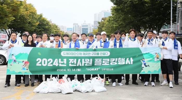 [구미=박병상 기자] 도레이첨단소재(대표이사 사장 김영섭)가 14일 구미공장이 위치한 경상북도 구미에서 임직원 1,300여 명이 동참해 플로킹 봉사활동을 실시했다.