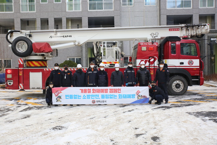 | ▲ 부영그룹과 태백소방서는 3일 태백 황지동 부영아파트 공사 현장에서 화재예방 캠페인과 소방안전교육을 실시했다. (사진=태백소방서 제공) |