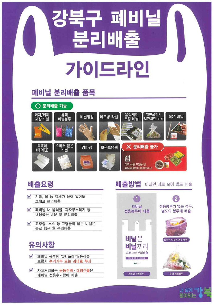 | ▲ 폐비닐 분리배출 가이드라인. (사진=강북구청 제공) |