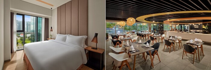 | ▲ (왼쪽부터) 2베드룸 아파트먼트 침실, 푸드 익스체인지 레스토랑 |