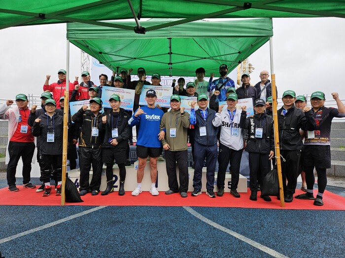 | ▲ 지난 8일 강진 마량항 일원에서 막을 내린 2024 샤크컴퍼니컵 빅게임 낚시대회에 참가해 입상한 전국의 조사들 기념촬영 / 강진군 제공 |