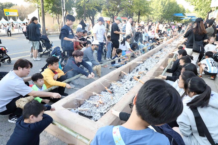 | ▲ 강동선사문화축제 ‘선사 비비큐 체험’ 프로그램 참여자들 모습 |