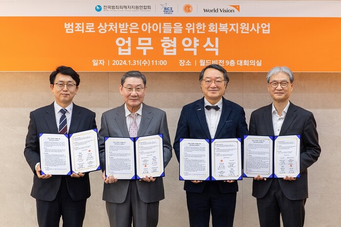 지난달 31일 서울 영등포구 월드비전 본부에서 열린 협약식에는 전국범죄피해자지원연합회, 재단법인 아가페, 소망교도소, 사단법인 온율이 참석했다.
