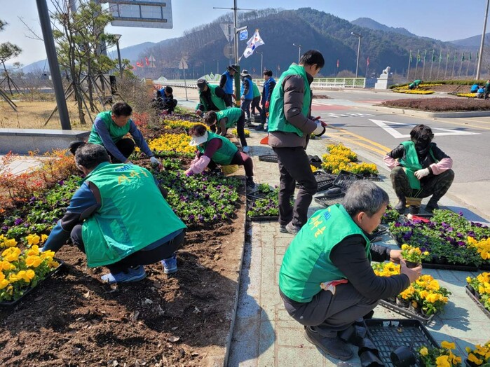 이날 식재는 새마을운동합천군지회 아름다운 합천가꾸기 사업을 위해 실시됐으며, 팬지, 마가렛 등 향긋한 봄꽃 17,000본을 색상별로 식재했다.