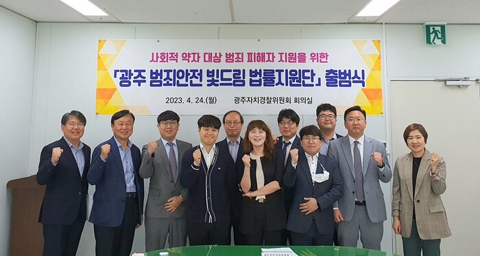 | ▲ 지난해 4월 출범한 광주 범죄안전 빛드림 법률지원단.기념촬영 자료사진 / 광주광역시 제공 |
