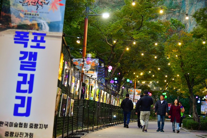 | ▲ 2019년 용마폭포문화예술축제에 마련된 폭포갤러리를 찾은 시민들의 모습.(사진제공=중랑구청) |