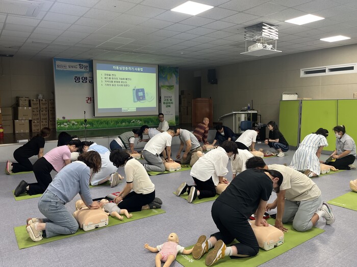 심폐소생술은 심장이 멈췄을 때 정지된 심장을 대신하여 뇌에 산소가 포함된 혈액을 공급해 주는 응급처치이다. 응급환자 발생 시 신속하고 적절한 대처를 통해 시민들의 생명보호에 기여하고, 현장 실전 능력을 키우기 위해 함양소방서와 연계해 교육을 진행한다.